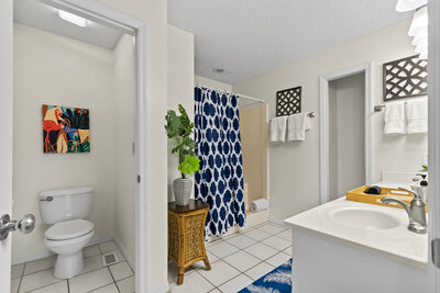 The hall bathroom, shared by bedrooms two and three, includes a tub-shower combo—ideal for both quick rinses and relaxing soaks.