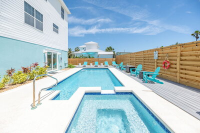 Enjoy the private saltwater pool and hot tub—perfect for refreshing swims by day and relaxing soaks under the stars at night.
